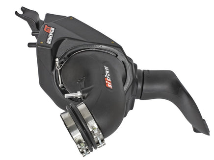 A custom CAD designed roto-molded housing made from high quality cross-linked polyethylene plastic eliminates the use of multiple components and ensures the coolest air intake charge available. This housing is designed for a perfect fitment into the engine compartment and matches the plastic engine cover and trim. Also included, is our stainless steel custom aFe POWER laser etched washers and bolts. This system uses a high quality cross-linked polyethylene plastic, CAD, dyno-tuned intake tube to achieve maximum power gains while maintaining a perfect fit. Also included is a high quality billet aluminum crankcase fitting provided for easy installation. A high quality CAD air scoop guides cool ambient air from behind the front main grille and directly to the performance air filter. This intake scoop is also constructed with high quality cross-linked polyethylene plastic for perfect fitment and sleek design. This Momentum intake system was designed around the largest filter possible to allow maximum performance and filtration. This cone filter has a massive 6" oval flange and is 5" tall Pro DRY S filter media. The Pro DRY S performance air filter features 3-layers of progressively finer mesh synthetic "oil-free" media and is constructed with 100% polyurethane frame for long life and multiple cleaning cycles. Premium stainless steel T-bolt clamps and a silicone coupling are used for strength and durability while also providing the most secure installation available. Also included, is our stainless steel custom aFe POWER laser etched dresser washer and bolts. Momentum intakes are designed with fewer parts for a quick and simple installation.
