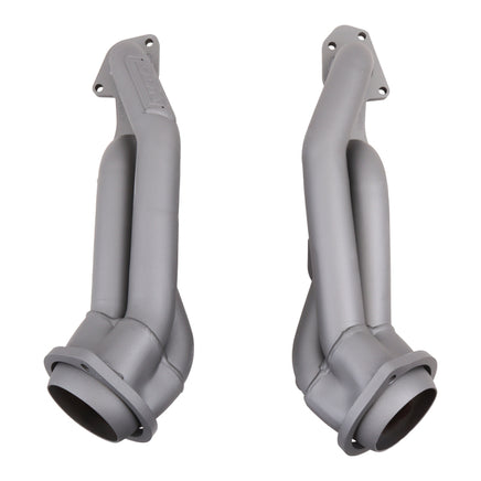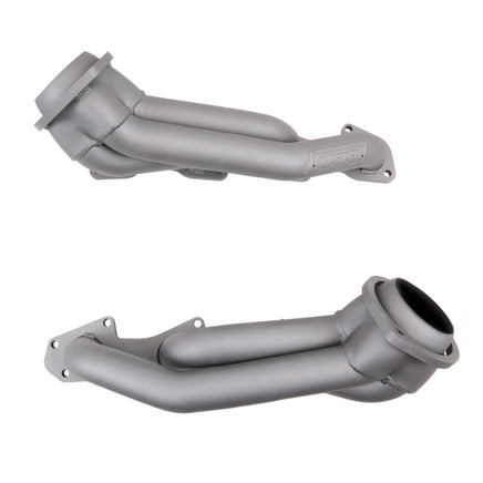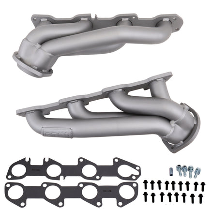 These BBK Performance shorty tuned Length exhaust Headers are designed and constructed as direct fit replacements for all 05-08 5.7L Hemi applications. Each header is manufactured with 1-3/4 in. CNC mandrel bent tubing that offers unrestricted exhaust flow for increased horsepower and torque over factory OEM manifolds. BBK tuned Length headers offer improved scavenging waves for better combustion, which leads to improved performance and fuel economy over stock or equal Length headers. As with all BBK Performance exhaust headers they feature a 3/8 in. laser cut flange for additional strength and a guaranteed leak free fit. All headers are robotically and precision hand welded and then pressure tested to ensure years of reliability and performance in the real world. All BBK exhaust headers are available in titanium ceramic or polished silver ceramic coated finish and include new exhaust header gaskets, header bolts and hardware to complete the installation.