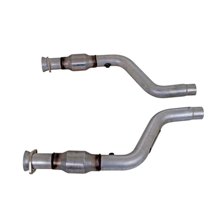 These BBK Performance short mid pipes with high flow catalytic converters are specifically designed to be used with BBK full Length exhaust headers to complete the installation to your cars exhaust system. This BBK mid pipe is designed and built with 2-3/4 in. CNC mandrel bent tubing for maximum exhaust flow and high flow steel substrate catalytic converters. All BBK mid pipes feature ball and socket style connectors for simple installation and adjustment for good ground clearance. Every BBK mid X pipe offers performance, quality and value that guarantees years of top performance for your Hemi powered car. Required Matching Mid Pipe for BBK Long Tube Headers 1647 & 16470