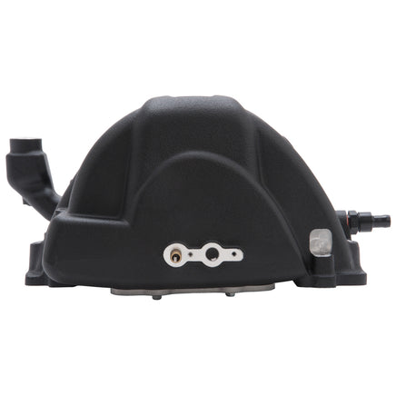 Edelbrock part #7179 Victor EFI intake manifold is designed for the "Eagle or WT" Chrysler 5.7L, 6.1L and 6.4L Gen III HEMI engines with fuel injection. The overall design is similar to the factory 6.1L SRT intake manifold, but with longer higher flowing runners and features relocated fuel injector bosses for improved flow and added nitrous bosses along the near vertical runners. The front inlet can accommodate the factory style 80mm throttle body or the 92mm Hellcat throttle body. In testing, the Victor EFI prototype made 25 hp over the stock intake manifold on a 6.4L engine. Manifold will clear most hoods without modifications. Required fuel rail kit #3647 available separately.