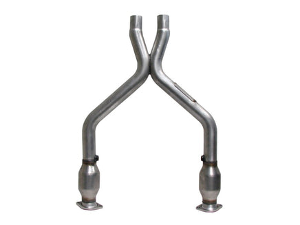 BBK Performance short mid X pipes with catalytic converters are specifically designed to be used with BBK full Length exhaust headers to complete the exhaust installation to your cars cat back exhaust system. This BBK mid pipe is designed and built with 2-3/4 in. CNC mandrel bent tubing for maximum exhaust flow and high flow catalytic converters. All BBK mid pipes feature ball and socket style connectors for simple installation and adjustment for good ground clearance. The BBK Performance X center section crossover is designed to maximize the exhaust flow potential of the Mustangs performance engine to get the maximum horsepower and torque available to the ground. Every BBK mid X pipe offers performance, quality and value that guarantees years of top performance for your Mustang.