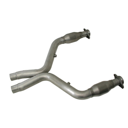 BBK Performance short mid X pipes with catalytic converters are specifically designed to be used with BBK full Length exhaust headers to complete the exhaust installation to your cars cat back exhaust system. This BBK mid pipe is designed and built with 3.00 in. CNC mandrel bent tubing for maximum exhaust flow and high flow catalytic converters. All BBK mid pipes feature ball and socket style connectors for simple installation and adjustment for good ground clearance. The BBK merged X center section crossover is designed to maximize the exhaust flow potential of your Mustangs high performance engine to get the maximum horsepower and torque available to the ground. Every BBK mid X pipe offers performance, quality and value that guarantees years of top performance for your Mustang.For Use With BBK Long Tubes 1633/0 1856/0 on 11-14 5.0 Applications