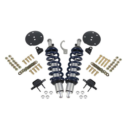 Front HQ Coil-Overs for 2015-2024 Ford F-150 4WD. Includes a pair of rebound adjustable shocks, springs, spring mounts and delrin spring washers.