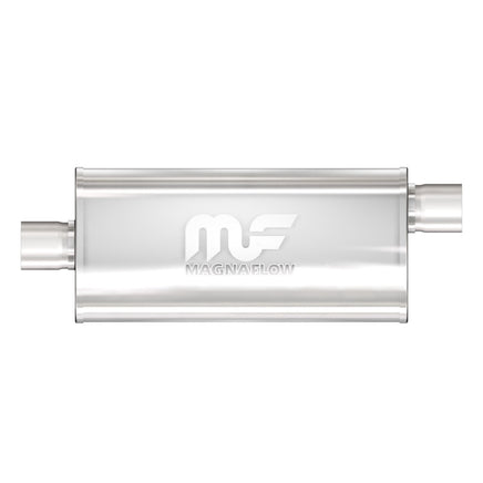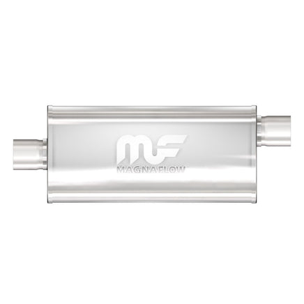 The MagnaFlow 5 X 8in. Oval Straight-Through Performance Exhaust Muffler 12256 is engineered to enhance your ride with a healthy helping of our signature exhaust sound and dyno-proven performance thanks to its free-flowing straight-through perforated stainless steel core wrapped in stainless steel mesh and acoustic fiber fill. The reversible, universal 2.5/2.5in. diameter inlet/outlet Straight-Through layout allows you to install it in whatever orientation and configuration you see fit. However, professional installation is highly recommended. Muffler 12256s weight-optimized 5x8x18in. oval-shaped body features a satin finish that elevates the overall aesthetics of your current exhaust setup. 12256 is made of durable, corrosion resistant stainless steel and produced using cutting-edge CNC precision robotic manufacturing techniques, all backed by MagnaFlow's limited lifetime construction warranty.