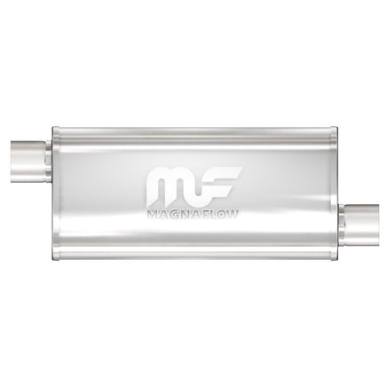 The MagnaFlow 5 X 8in. Oval Straight-Through Performance Exhaust Muffler 14239 brings our signature sound and dyno-proven performance to your ride with a free-flowing straight-through perforated stainless steel core wrapped in stainless steel mesh and acoustic fiber fill, and a weight-optimized, reversible 3/3in. diameter inlet/outlet Straight-Through layout. Muffler 14239s 5x8x14in. oval-shaped body features a premium, brushed finish for an elevated aesthetic that matches the enhanced exhaust note and performance that this muffler brings to your ride. The universal design allows for flexible placement of 14239 within your exhaust system to meet the specific spacing requirements of your vehicle, although professional installation is highly recommended. 14239 is made of durable, corrosion resistant stainless steel and produced using cutting-edge CNC precision robotic manufacturing techniques, all backed by MagnaFlow's limited lifetime construction warranty.
