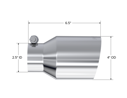 The exhaust tip is the crowning touch to your performance exhaust. It is your opportunity to really show off your personal style. That's why MBRP offers such a wide assortment of high quality, bolt on tips, because everybody has their own idea of style. MBRP offers T304 polished stainless, Black coated, Burnt End and Carbon Fiber tip options in various sizes. The tips are universal fit so be sure to measure your tail pipes outside diameter and match it to the MBRP tip INLET diameter before ordering.